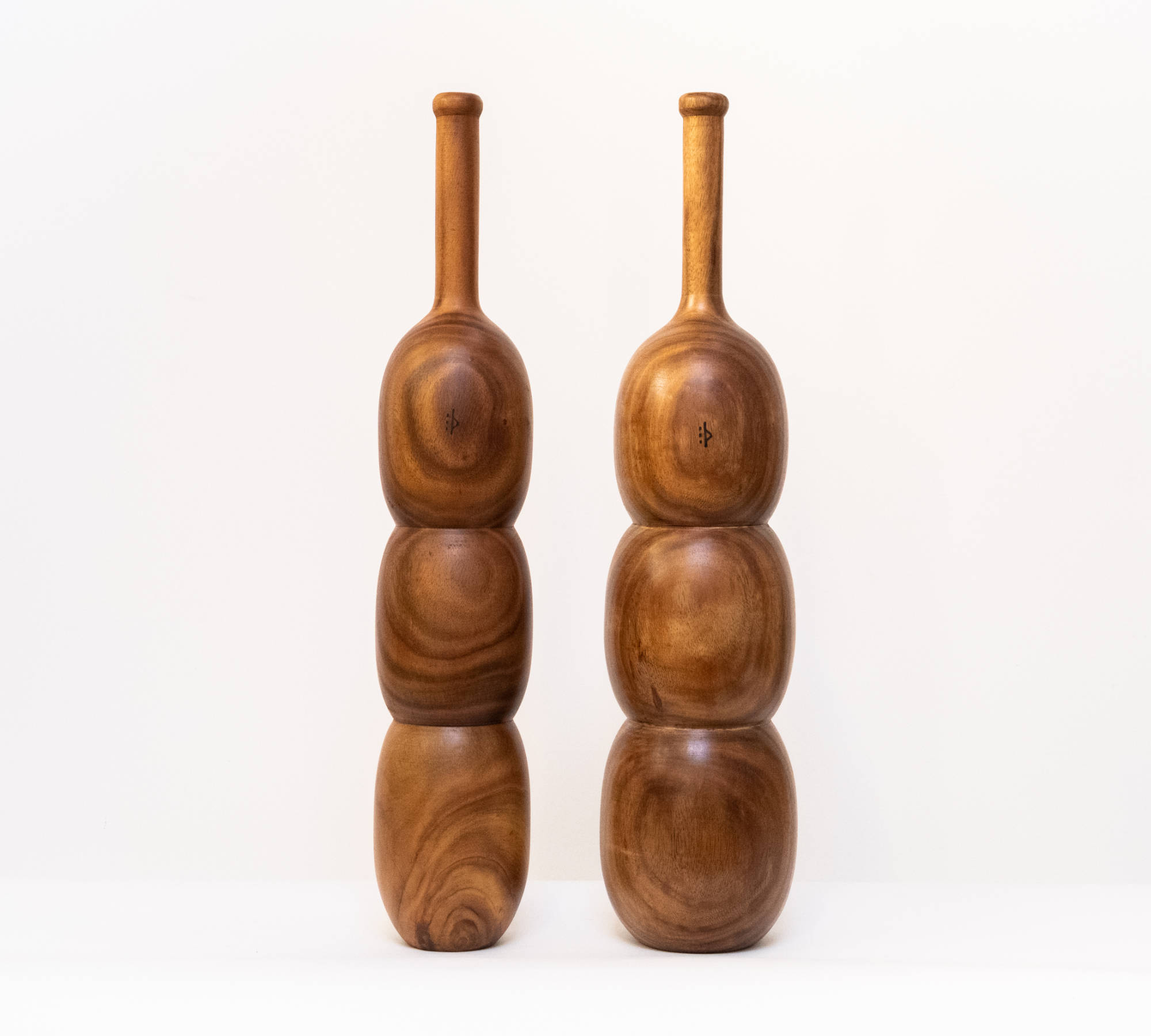 Each club is hand-turned from a single piece of walnut timber by craftsman within a charity organisation that supports over 400 villages in southern India, whom BMF supports. In addition, we donate 10% of production costs to the help the charity as well as their tree planting. Due to the nature of wood there is a variation in density and colour.